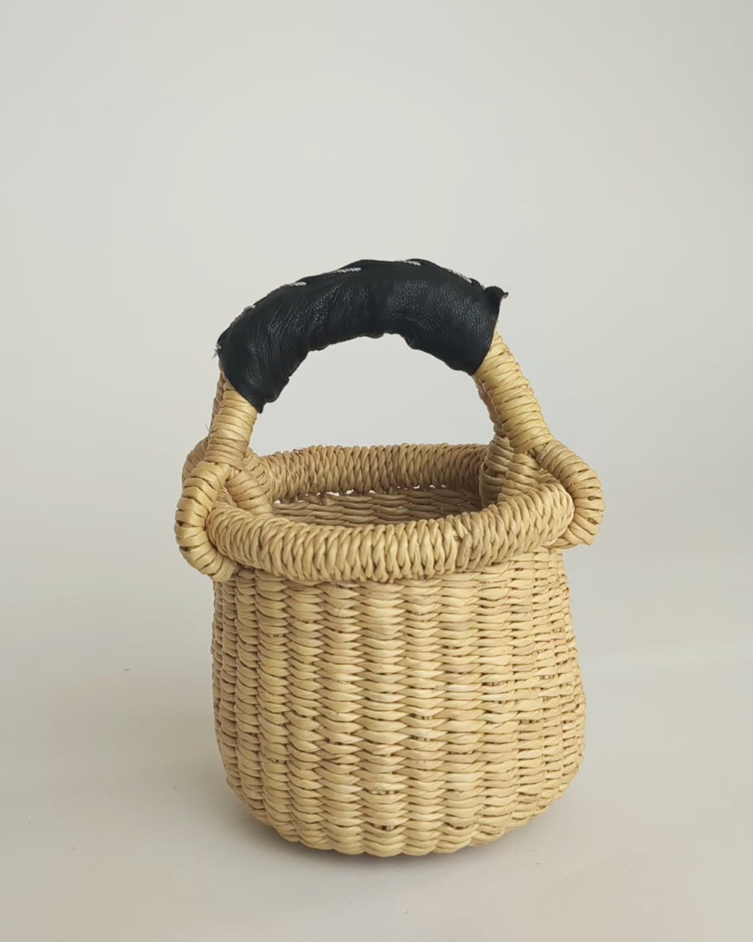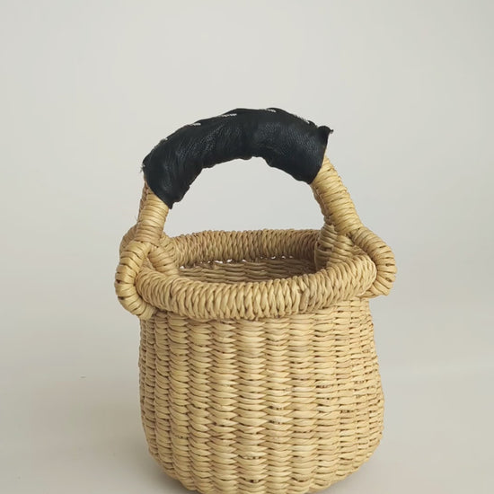 An adorable natural straw mini basket, handwoven in Africa, with leather stitched around the handle. Cute and tiny, this basket is a fun way to store your little treasures and decorate your home with. It is a perfect gift to give someone who loves to collect little things or as storage for little things.