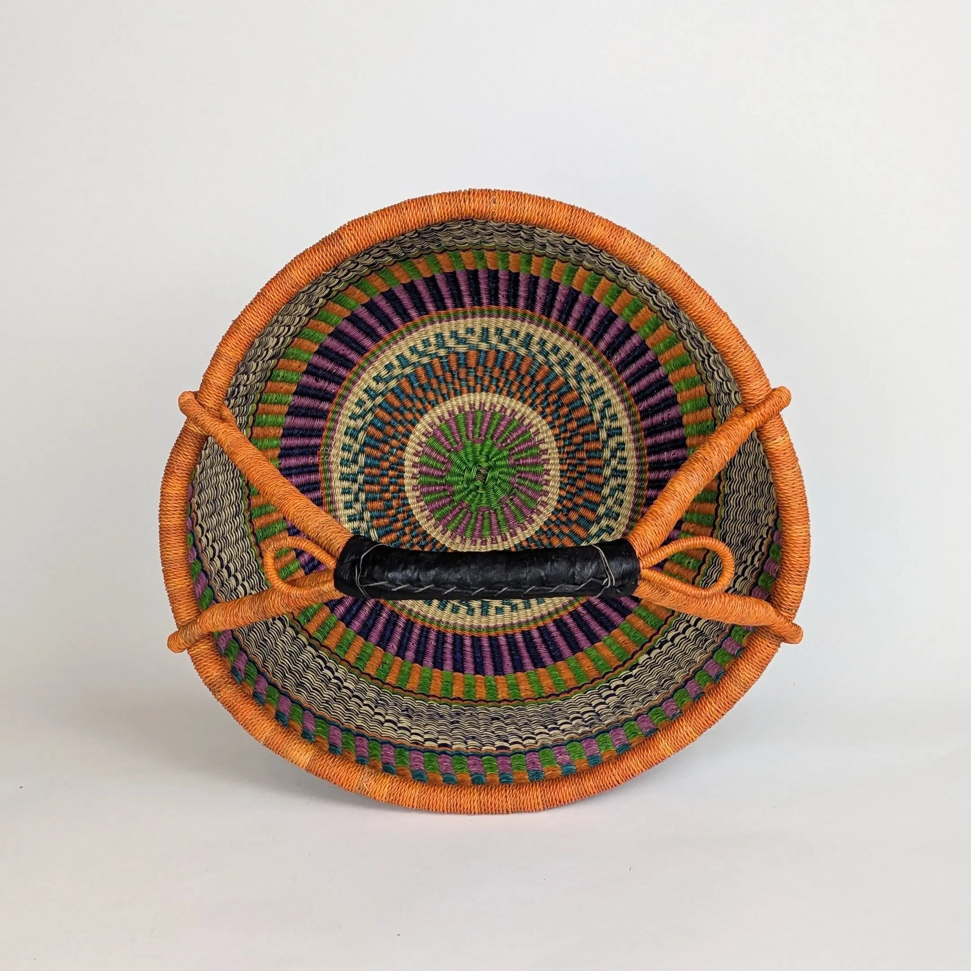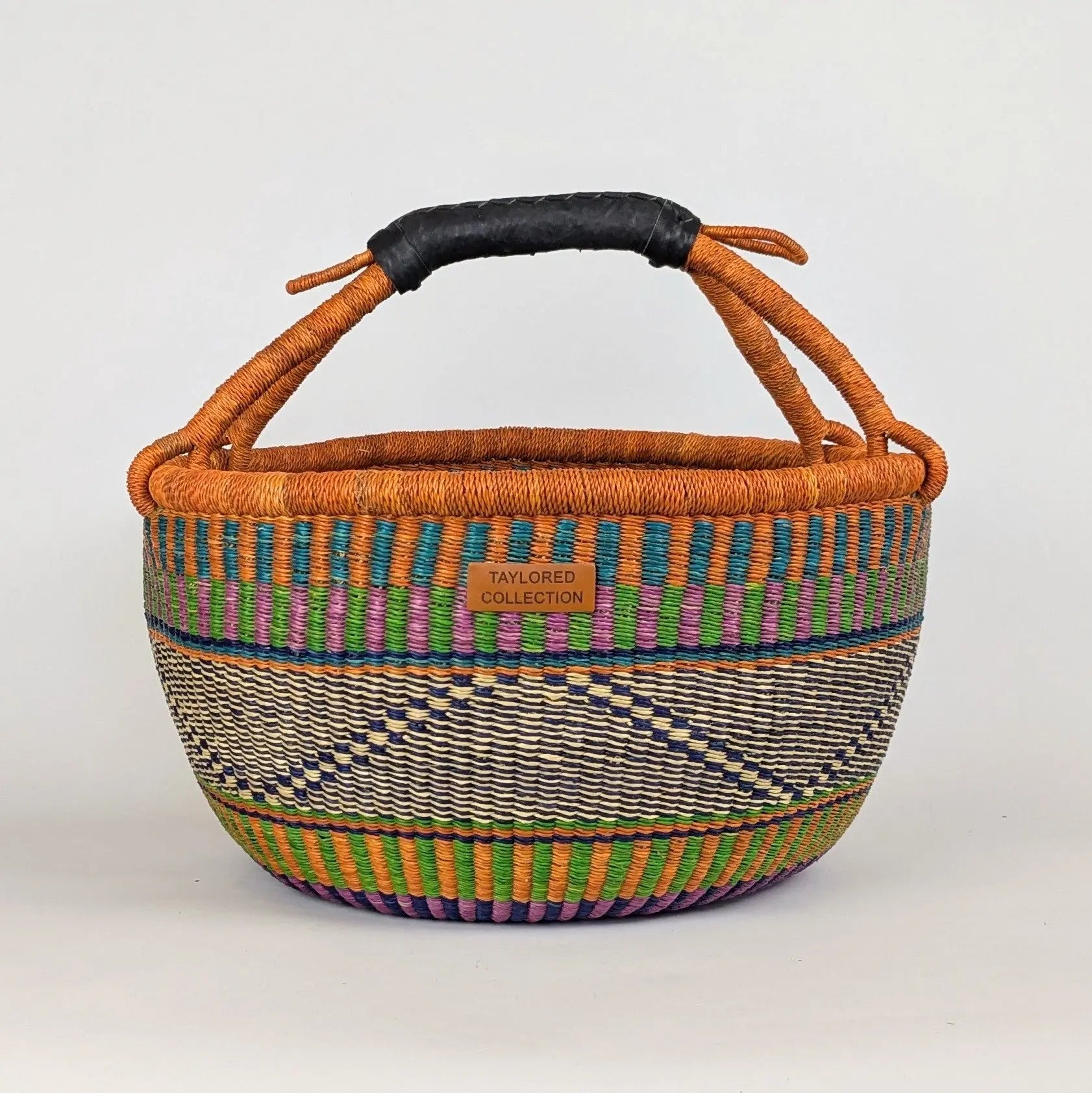Handwoven by master artisans in the village of Bolgatanga, Northern Ghana, each basket in our Bold Colored series captures the essence of ancient traditions infused with joyful, contemporary energy. Crafted slowly from natural elephant grass, these baskets are dyed in a symphony of bold hues—vibrant pinks, deep blues, fiery oranges, lush greens, and rich blacks—woven into intricate geometric patterns that tell stories of community, creativity, and enduring cultural pride.